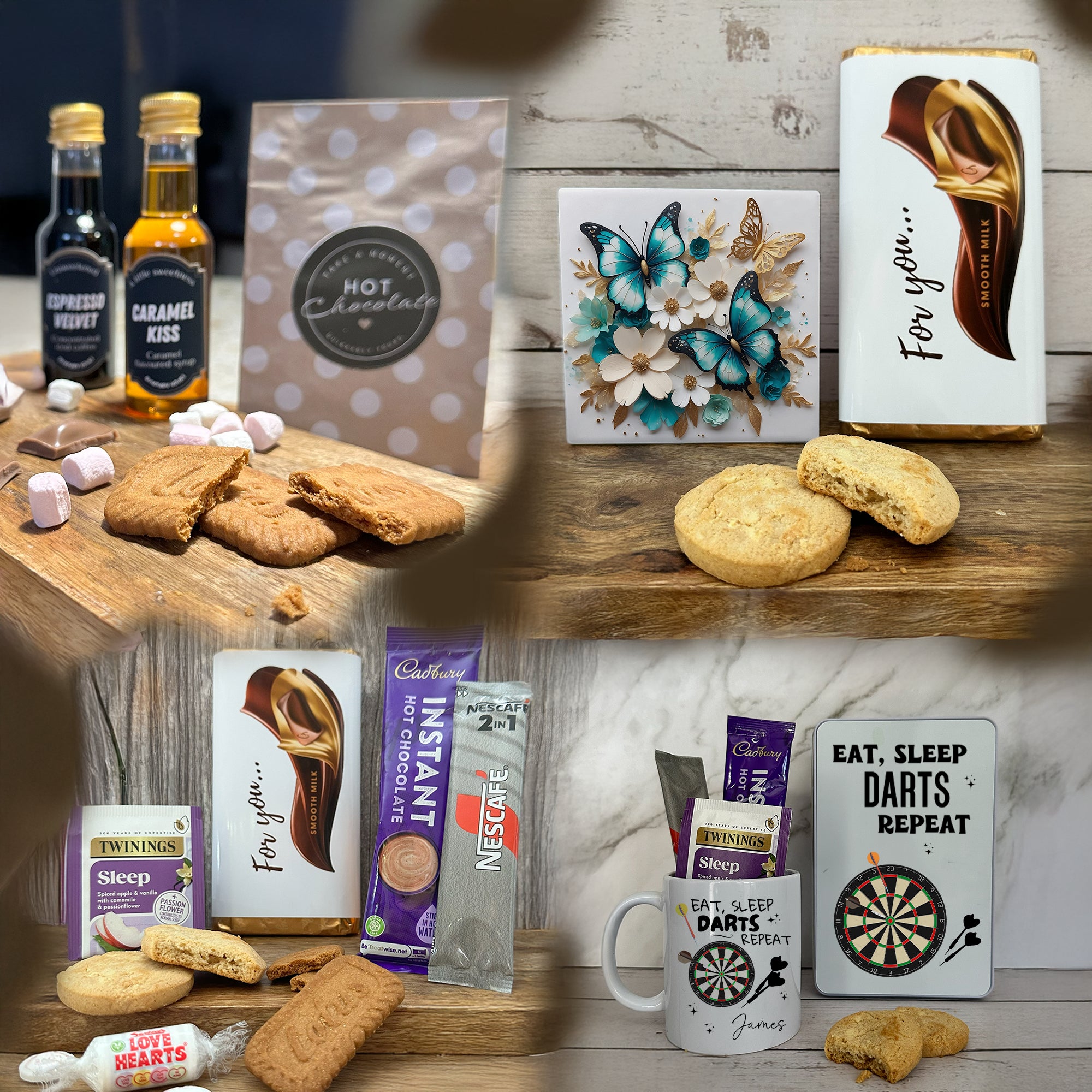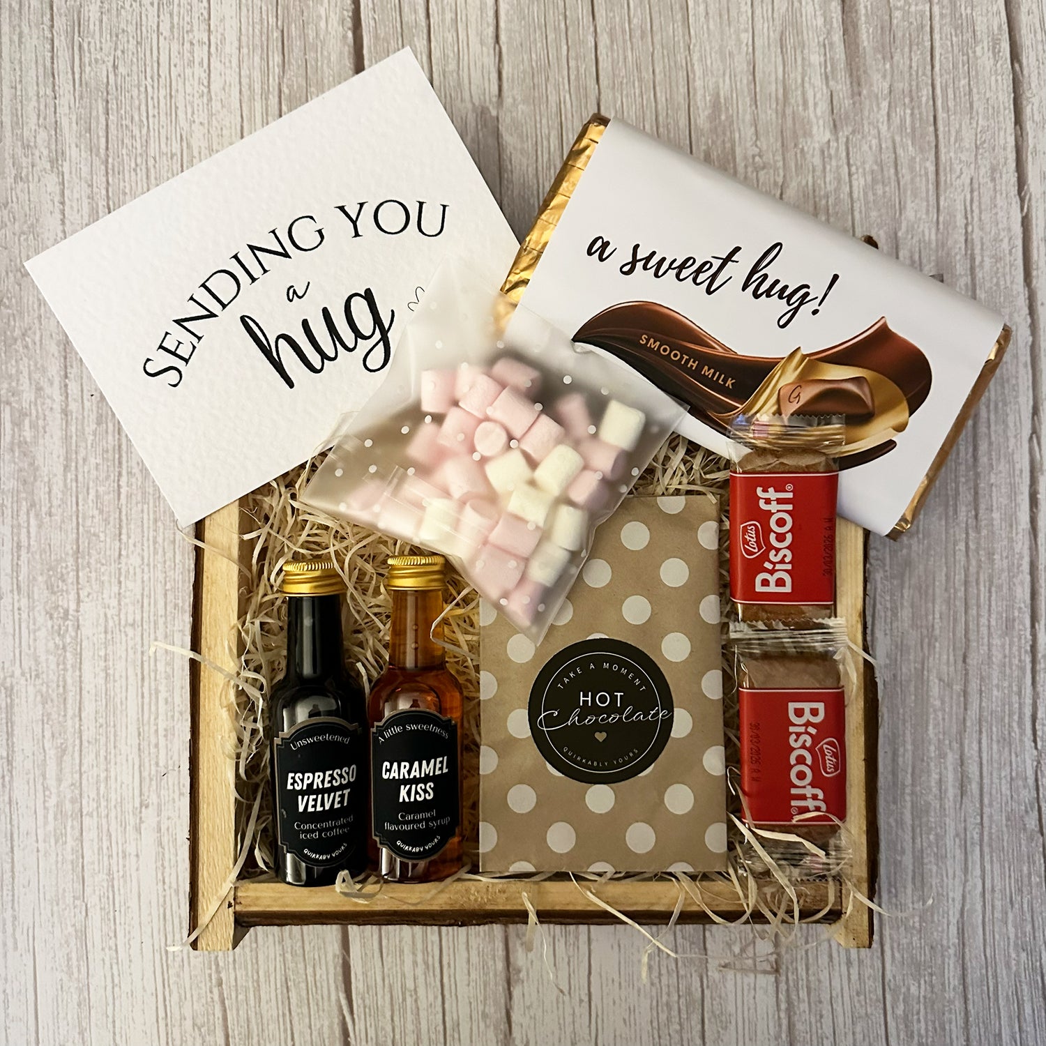 From comforting hot chocolate and smooth coffee to soothing tea, buttery biscuits, Galaxy chocolate and a hint of Biscoff - your perfect little moment of pause in a box.